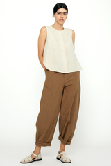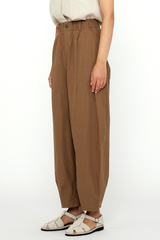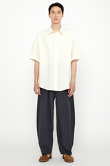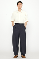 These trousers by 7115 Szek are crafted from dense, plain-woven cotton poplin that boasts a smooth, crisp, paper-like. They feature an elastic waistband with belt loops, front pleats, and side pockets. With a loose fit and soft, lantern-shaped legs, they offer a timeless style perfect for everyday wear.
