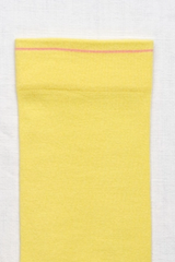 The French brand Bonne Maison creates high quality socks with Egyptian cotton and an elastane double thread. A crew sock in canari yellow with pink toe and edging.
