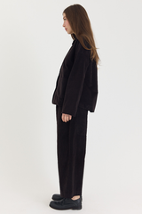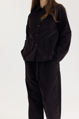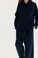 The Shirt Loose Blazer by Album di Famiglia is tailored from velvet, bringing softness and depth to a relaxed silhouette. Cut to a boxy shape with dropped shoulders and long sleeves, it balances structure with ease. A simple collar and button-front fastening keep the silhouette clean, while patch pockets and a straight hem lend a utilitarian touch. Effortless yet refined, it’s a piece that moves easily between casual layers and elevated wear.