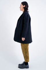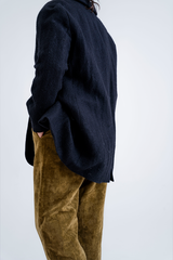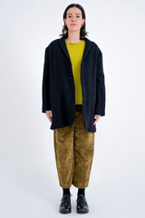 The P1940 jacket by Apuntob is crafted from a blend of virgin wool and hemp, giving the fabric a beautiful depth and handfeel. The jacket is fully lined with cotton, and features a deep notch collar, side welt pockets and a vent at the back. This jacket stays true to Apuntob’s minimalistic sensibilities and is a piece that transcends seasons.