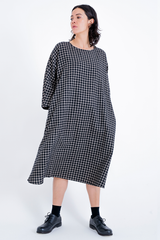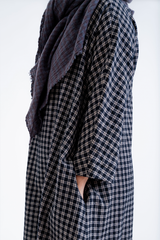 The P1980 dress by Apuntob is crafted from a virgin wool blend that drapes beautifully. The dress features a collarless neckline, long sleeves, and a minimalistic silhouette. This piece is a timeless addition that’s perfect for layering or wearing on its own, making it a versatile staple to cherish.