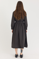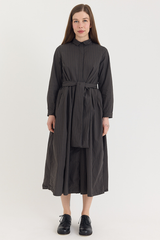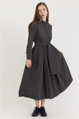 The Lena Dress by Bergfabel is crafted from 100% cotton and features a classic collar with a hidden button closure, side seam pockets, and an integrated belt for effortless styling. Cut in a timeless silhouette with gentle gathering at the waist, the belt allows for subtle variations in shape, adding a sense of play to this refined and versatile piece.