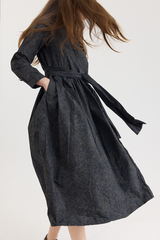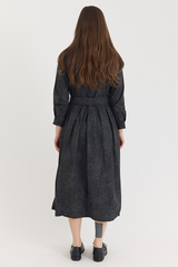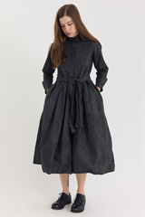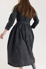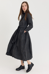 The Lena Dress by Bergfabel is crafted from 100% cotton and features a classic collar with a hidden button closure, side seam pockets, and an integrated belt for effortless styling. Cut in a timeless silhouette with gentle gathering at the waist, the belt allows for subtle variations in shape, adding a sense of play to this refined and versatile piece.