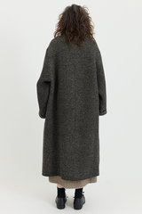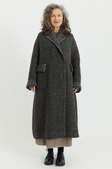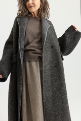 This double-breasted coat by Boboutic is crafted from a Yak, Wool blend that lends an incredible depth and texture. Designed with a relaxed silhouette, it features an overlapping front with hidden buttons, notched lapels, dolman sleeves, and two oversized pockets. Unlined yet thick and insulating - the double breasted coat is an elegant layer whilst remaining easy to wear.