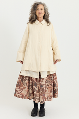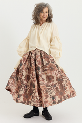 The Double Rideaux Skirt by casey Casey is an iconic silhouette of the CASEY/CASEY wardrobe, crafted in exclusive Ikat fabric with a washed finish that enhances its textured beauty. Featuring an elasticated waist with an adjustable drawstring, it offers both comfort and versatility. The signature pleats on the front and back create fluid movement, while practical front pockets add a functional touch.