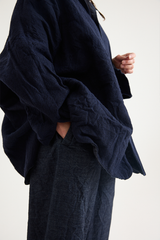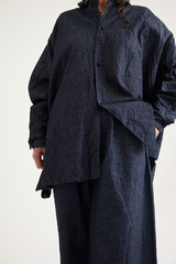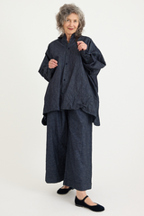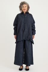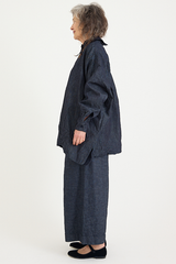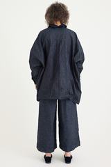 The Uomo Corta Shirt Jacket by Daniela Gregis is crafted from 100% wool on one side, and 100% cotton on the reverse. It features a small point collar, a relaxed fit, and crochet front buttons. A versatile silhouette that can be worn reversed to give a completely different look to any outfit, with a delicate wool on one side and a deep indigo denim on the other.