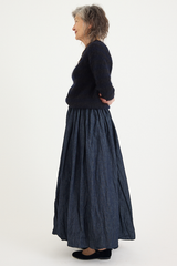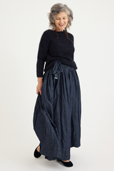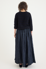 The Regatto sweater by Daniela Gregis is hand-crafted from a mohair silk blend. This lightweight knit features an incredibly subtle, thick navy blue and black stripe. This classic pull-over style is perfect for dressing in cooler seasons, adding a touch of texture and pattern to an outfit while keeping you warm and cozy.