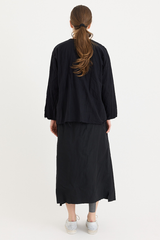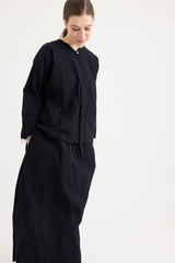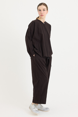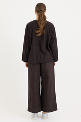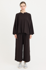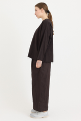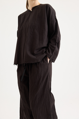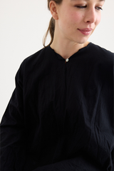 A pullover top by Scha, featuring a single mother-of-pearl fastening at the front. Designed with a round neckline, full-length sleeves, and raw-edge finishing. Made from 100% cotton flannel, with the weight of the fabric developing a beautiful shape to it. An ideal piece for layering with other creations by the brand.