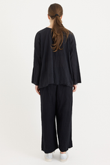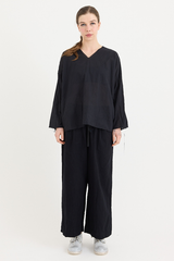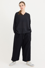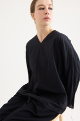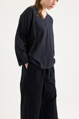 A pullover top by Scha, featuring a rounded neckline at the front and v-neck at the back. Designed with raw-edge finishing, unique neckline and subtle A-line shape. Made from a delicate cotton batiste that subtly drapes from the body. This piece can be worn either way, with the v-neck falling at the back, or front. An ideal piece for layering with other creations by the brand.
