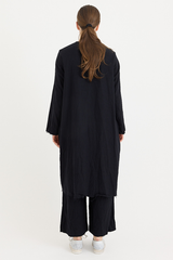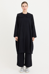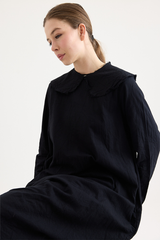 A dress by Scha, featuring a removable Peter Pan collar fastened with a mother of pearl button. Designed with a generous fit, two side pockets, and raw-edge finishing. Made from a delicate cotton batiste that subtly drapes from the body. This is a piece to cherish for years to come, one that will wear beautifully and can be styled in numerous ways, making it an incredibly timeless and versatile piece.