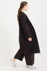 Wide leg pants by Scha, feature an adjustable waist with a tie and elastic, side seam pockets, and a single front pleat on each side. Made from a heavyweight waxed paper cotton, that has a sculptural element in its stiffness. These are full length trousers in a wide cut, making them the perfect pair for relaxed, yet refined dressing.