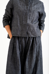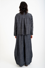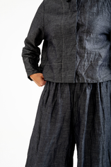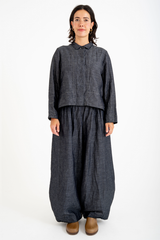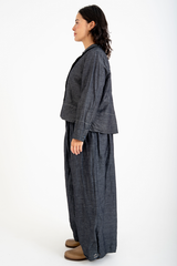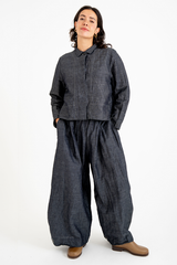 The Rosemary Pant from Bukeshla is crafted from a unique blend of linen, cotton and tencel. It features an elastic waistband, side pockets, and wide legs with a single button at the hem to adjust the width. The waistband and pockets are detailed with contrasting color finishes. This relaxed-fit piece exemplifies versatility and comfort.