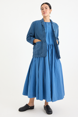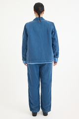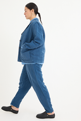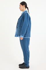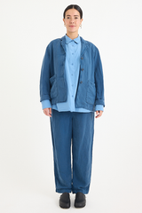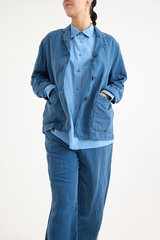 The Workwear Puddy Jacket in Taffeta is designed with a notched lapel and a washed finish, it offers a relaxed yet structured silhouette. Double patch pockets on the front and an additional inside pocket provide functional storage. Finished with corozo buttons, this unlined jacket is both versatile and effortlessly timeless.