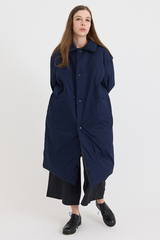 Crafted from water-repellent nylon with a cotton lining and duck down filling, the Otic Coat is a versatile, oversized layer designed for both style and warmth. Reversible by design, it features dropped shoulders, a press-button closure, two welt pockets, and a back slit, combining practicality with contemporary elegance.