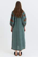 The Los Cabos Puff Dress by Benaras is crafted from 100% linen and finished with delicate hand-stitched embroidery, showcasing the brand’s artisanal attention to detail. Designed with exaggerated puff sleeves, a tie belt, and an adjustable neckline, it allows for versatile styling options. The dress has a relaxed, breathable fit, making it perfect for summer evenings or effortlessly throwing on while travelling.