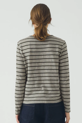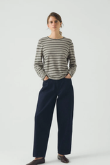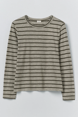 Lightweight striped slubbed organic cotton. Crew neck. Set-in sleeves. Top-hip length.