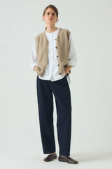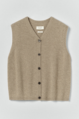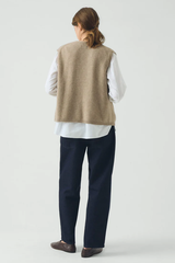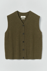 Knitted from a soft blend of wool and recycled cashmere, the tank has a clean V-neck and set-back shoulders. Finished with a ribbed hem.
