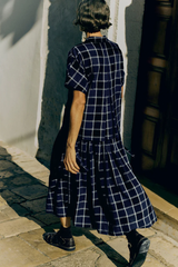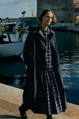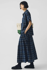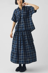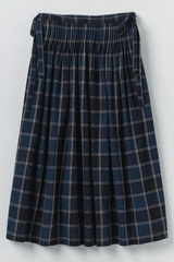 Made from a checked cotton and linen blend, intricate pintucks at the waist give our skirt volume. It falls to the lower calf and features ties at each side of the waist, with concealed corozo buttons at one side to fasten.