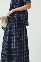 Checked cotton and linen blend. Pintuck pleats. Full length. Side tie closures. Side concealed corozo buttons.