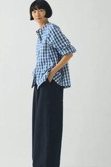 The Alfresco Gingham Cotton Shirt is crafted from organic cotton woven with gingham checks, inspired by the textiles accompanying relaxed alfresco dinners. Cut to a swingy shape with a band collar and finished with corozo buttons running down the front.