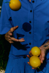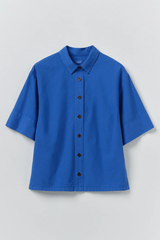 Organic cotton and linen-blend poplin. Garment-dyed. Dropped shoulders. Elbow-length sleeves. Back box pleat. Back hanging loop. Side hem slits. Wide placket. Corozo buttons.