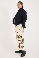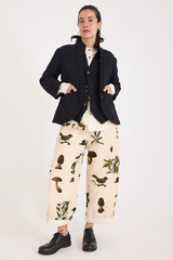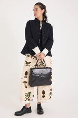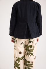 The Checked Black Jacket by Aleksandr Manamis is crafted from a wool–cotton blend woven with a subtle check, adding depth and texture to the black fabric. Featuring a high lapel, curved hem, and button detailing throughout, it reflects Manamis’ romantic approach to tailoring, drawing inspiration from eras past while maintaining a timeless, textural aesthetic.
