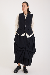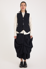 The Checked Black Vest by Aleksandr Manamis is crafted from a wool–cotton blend woven with a subtle check, adding depth and texture to the black fabric. The vest is lined with the beautiful herbarium print seen throughout this season, and cut to an irregular shape that emphasises the label's artisanal sensibilities. The piece is finished with raw hems and a tie back, elevating any outfit for year round layering.