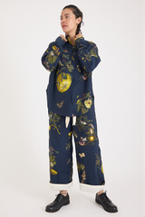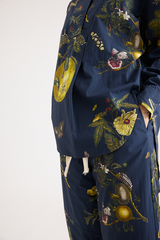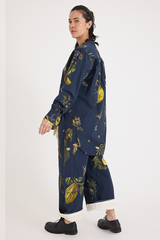 The Natura Bleu Pants by Aleksandr Manamis is crafted from soft, washed cotton that develops a gentle, textured finish. The blouse is half buttoned, with a gathered back that gives the shirt a gentle sense of volume. The deep navy backdrop highlights the season’s botanical print, inspired by historical drawings, infusing the piece with a poetic and timeless sense of beauty.