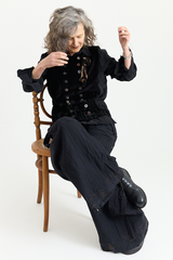 This double vested vest by Archivio J.M. Ribot is crafted from a vintage cotton velvet, and fully lined with viscose. The vest features a double breasted pattern, with variations in the velvet fabric that creates a beautiful contrast in texture. The fit is relaxed, with a wide body. Each shirt has been finished with antique buttons, hand stitched buttonholes and a removable floral broach, details that beautifully embody the label's artisanal sensibilities.
