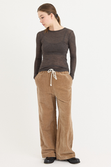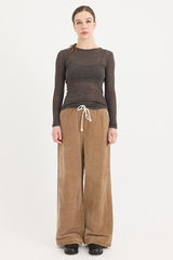 The Johnny Jogger by Sono is crafted from 55% organic cotton and 45% linen in an irregular washed velvet, woven exclusively for Sono in Tuscany. Dyed to Oeko-Tex® Standard 100, the fabric is low-impact and free from harmful chemicals. Designed with an elasticated waist, organic cotton drawstring, and side seam pockets, the Johnny Jogger is cut wide for an elegant, relaxed fit.
