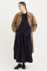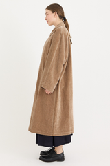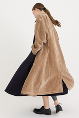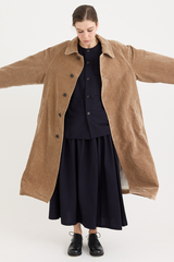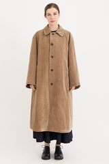 The Carl Coat by Sono is crafted from 55% organic cotton and 45% linen in an irregular washed velvet, woven exclusively for Sono in Tuscany. Dyed to Oeko-Tex® Standard 100, the fabric is low-impact and free from harmful chemicals. With its relaxed cut, raglan sleeves, and full lining, the Carl Coat is designed for comfort and ease. A timeless piece, perfect for layering when temperature drops year round.