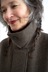 The Langhaus jacket by Wright + Doyle is crafted from a warm Italian wool. This short overcoat features a concealed zip opening and double opening front pockets that open from both the side, or underneath the top pocket flaps. The jacket has been finished with raw hem detailing at the collar, and features pockets mounted on top of a washed bone coloured Italian paper cotton. This is an incredibly crafted jacket that exemplifies Wright + Doyle’s attention to detail and craftsmanship.