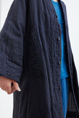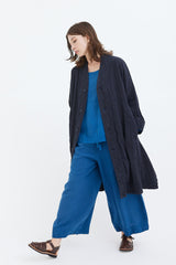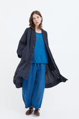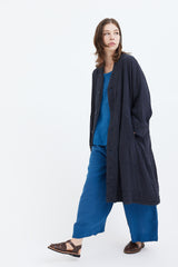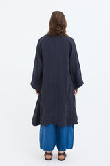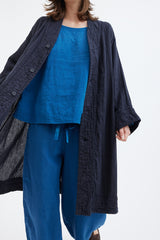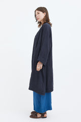 A light linen coat with raglan sleeves and large welt pockets featuring decorative double-linen detailing. Dyed by hand several times to achieve a beautiful richness of colour. Garments are then hand washed and rung, to give a soft and luxurious feel.