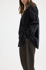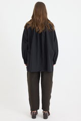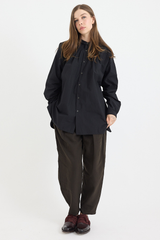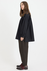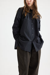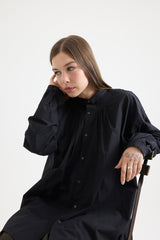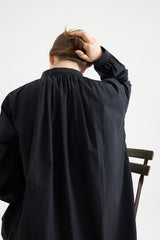 A long-sleeve blouse by Kaval, crafted from lightweight cotton. It features a button closure with ceramic buttons, gathered detailing at the centre back, three pleats on each side at the front, a small pointed collar, side slits, and dropped shoulder. The full-length sleeves have single-button narrow cuffs with delicate gathers at the wrists. A design that embodies Kaval’s signature craftsmanship.