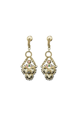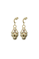 A pair of gold-finished Sterling silver earrings composed of two clover-shaped pendants adorned with multicoloured mini zircons and a touch of ruthenium. Each pendant is mounted on a 7 mm diameter half-creole. A talisman piece of jewellery to bring you luck.