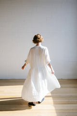 Introducing the Faye Dress, crafted from high-quality lightweight European linen, the Faye features a drop waist, half-button front, and gathered long skirt. The inclusion of pockets adds both function and style. Please note that the lightweight linen in white is sheer and may require being styled over a slip, based on individual preference. Proudly crafted in Lithuania and designed in Melbourne, the Faye dress is a timeless choice for any wardrobe.