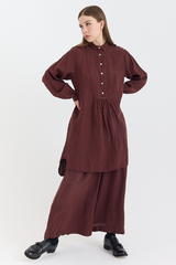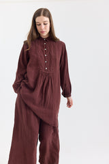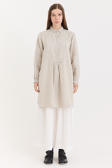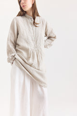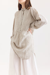 The Fran Long Shirt by Metta Melbourne is a longer version of the Françoise French Shirt. Inspired by French night shirts, this comfortable and elegant shirt is designed with a minimal collar, front bib with subtle gathering, and a full-length sleeve with a buttoned cuff.