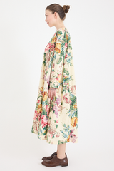 The Nomi Dress is an updated version of Metta's popular Olive Dress. This season in a bold and beautiful 'Bouquet Print' floral design, and hand screen printed onto our crisp cotton poplin. Combining both structure and organic drape, the Nomi Dress has an elegant and slightly scooped neckline with v-notched detail, dropped shoulders, and side panels with gentle gathering. A perfect statement wear alone or layer style, the Nomi Dress features a longer sleeve for coverage and generous side pockets concealed in the seams.