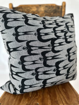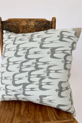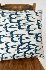 Fashioned from Akira Minagawa's Hello Swallow fabric, this cushion depicts hope-filled Swallows gliding in vast skies to find a new habitat for the summer, spreading their wings as they head for a place to give birth to new lives.