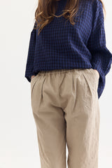 The Trousers P1922 by Apuntob are crafted from midweight technical linen gabardine with a remarkably soft touch. They feature an elastic waistband, side pockets, a tapered leg, and subtle front pleats. An elegant and contemporary design to hold onto for seasons to come.