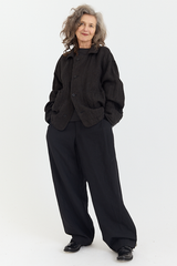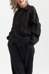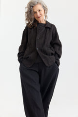 The Solo Wood JacketJQ by Klasica is crafted from a beautiful midweight linen jacquard. It features a spread collar, two flap pockets, front button fastening, and cuffed sleeves with button detail. A distinctive piece — full of texture, charm, and character.