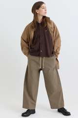 These unisex trousers by Wright + Doyle are crafted from cotton with 2% elastane for added comfort. They feature a shirred drawstring waistband with a channel rope tie, reinforced internal knee patches with external topstitching, and both front side and back patch pockets with flaps. Finished with a button and zip fastening, this relaxed, straight-leg style balances function and ease.