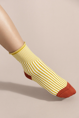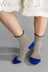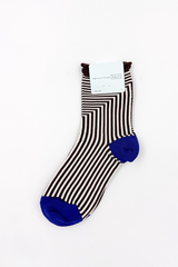 A homage to the famed Swiss-French architect, these graphic roll cuff socks made from mercerized cotton and woven in refreshed colors for the season.