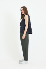 These lightweight pants by ApuntoB feature an elastic waistband, two patch pockets on the back, side seam pockets, and two front pleats on each side. With a slightly tapered leg that narrows towards the ankle, they offer a relaxed yet elegant fit.