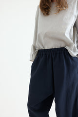 Midweight pants by ApuntoB, crafted from a luxurious linen and virgin wool blend. Featuring a low crotch, straight and wide legs, an elastic waistband, side pockets, and patch pockets on the back. This relaxed, elegant silhouette is perfect for everyday wear.