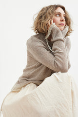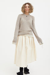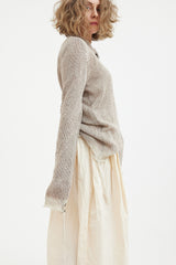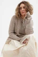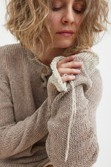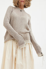 A soft, textural sweater by Archivio J.M. Ribot, knitted by hand in Italy. Features a vintage button up collar and feature buttons on the sleeves. Finished with a stripe detail around the neck, cuffs and hem, this is a truly unique addition to your wardrobe.
