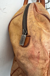 Beautiful canvas bag by Numero 10, crafted from leather and canvas. The distressed finish on both the leather and fabric lends it a charming vintage appeal. Fully lined with an inside pocket.