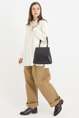 Handmade in Italy, the Flat Small Lock Bag by Cherevichkiotvichki is meticulously crafted from high-quality buffalo leather. It features a compact compartment with an internal pocket, a buckle closure, and a top handle at the back, offering both practicality and style.