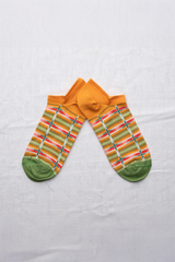 The French brand Bonne Maison creates high quality socks with Egyptian cotton and an elastane double thread. An ankle sock featuring a turmeric yellow check design.