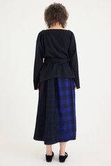 The Coulisse Taglio Skirt by Daniela Gregis is crafted from an incredibly soft 100% wool, with varying weaves throughout. Featuring a tie waist that is the width of the bottom hem, allowing one to cinch in the skirt as much as needed, revealing varying combinations of the different fabrics. This skirt is an incredibly versatile piece, one that is beautifully understated and timeless.